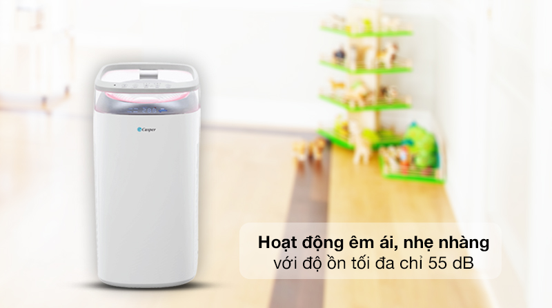 Mặc dù công suất hoạt động tương đối cao nhưng máy lọc không khí chỉ phát ra độ ồn tối đa 55 dB khi vận hành, đảm bảo không gây tiếng ồn lớn ảnh hưởng đến sinh hoạt hằng ngày của bạn, đặc biệt đối với gia đình có trẻ nhỏ và người lớn tuổi.