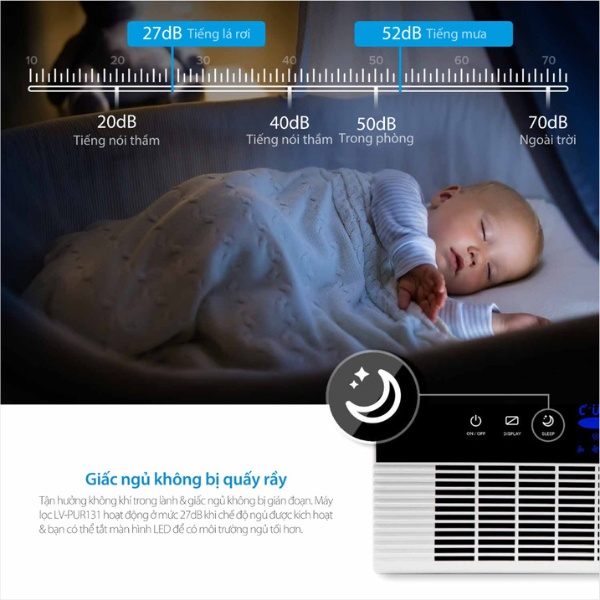 Chế độ ngủ đặt bộ lọc về cài đặt thấp nhất để tạo ra không khí trong lành khi bạn ngủ yên mà không tạo ra tiếng ồn. Chế độ tự động thông minh để chỉ ra chất lượng không khí xung quanh, tự động đề xuất tốc độ quạt để làm sạch không khí của bạn nhanh hơn.