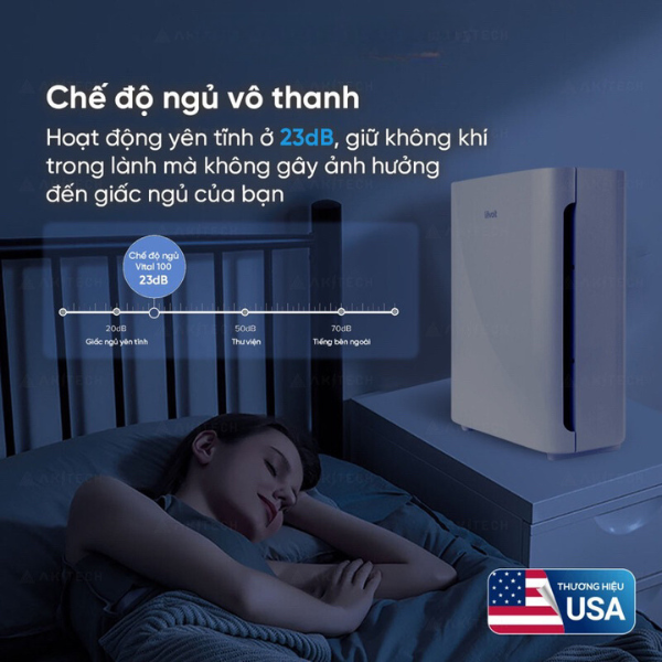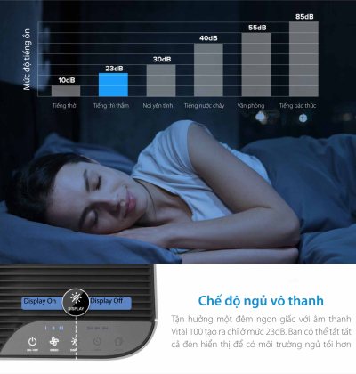 Ở chế độ Ngủ, máy chạy tốc độ quạt thấp nhất có thể chỉ với 26dB. Tận hưởng bầu không khí thông thoáng hơn và giấc ngủ không bị gián đoạn nhờ Máy lọc Vista 200 giúp loại bỏ mùi hôi từ vật nuôi và khói thuốc.