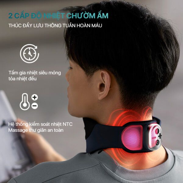 Trang bị tính năng chườm nhiệt, giúp giảm sưng và mệt mỏi, nhiệt độ được điều chỉnh cẩn thận để tạo cảm giác ấm áp và thoải mái, đồng thời thúc đẩy lưu thông máu và giảm căng cơ. Điều này đảm bảo bạn có trải nghiệm chườm nóng an toàn và thoải mái, tránh nguy cơ bỏng do tai nạn.