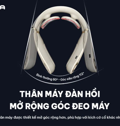 - Góc mở rộng 112° (so với 80° thông thường) giúp máy phù hợp với mọi kích cỡ cổ, mang lại cảm giác thoải mái khi sử dụng.