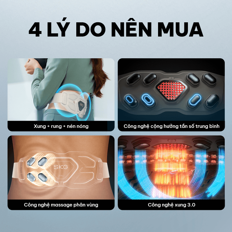 Những cơn đau lưng của bạn sẽ nhanh chóng được xoa dịu, đổi lại sự thư giãn, nhẹ nhõm và dễ chịu cho vùng lưng, chỉ với chiếc máy massage lưng SKG W9 Pro. Với công nghệ cải tiến hiện đại và thông minh, W9 Pro sẽ chạm tới những vùng đau, thực hiện các thao tác xoa bóp, massage chuyên nghiệp, giúp những cơn đau vùng lưng giảm đi nhanh chóng.