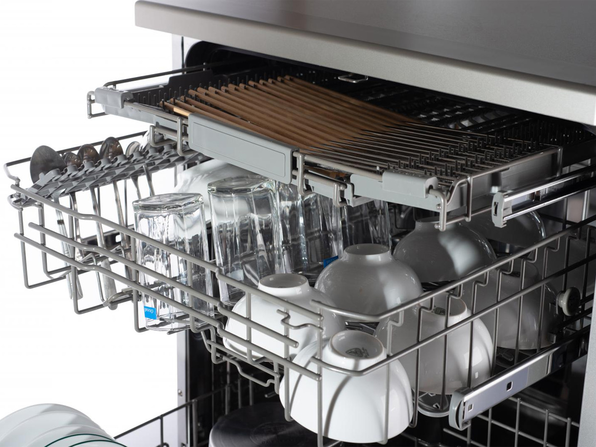 Hơn nữa, máy rửa bát có thiết kế buồng máy bằng thép không gỉ, chịu được nhiệt độ cao và không tạo ra chất độc hại trong quá trình máy rửa bát hoạt động. Với 3 tầng giá xếp đồ, tối ưu hóa việc sử dụng không gian một cách tiện lợi. Điều này cho phép bạn xếp được nhiều bát đĩa hơn, đồng thời vẫn đảm bảo chất lượng và hiệu quả trong quá trình rửa. Các tầng giá xếp đồ linh hoạt có thể điều chỉnh khoảng cách ở tầng giữa khoảng 5cm, giúp tạo thêm không gian phù hợp với nhiều dụng cụ nấu ăn như nồi cao, đĩa rộng, hoặc chảo sâu, kích thước quá khổ... Điều này làm cho máy rửa bát trở nên đa năng và thích hợp cho nhiều loại bát đĩa và dụng cụ nấu ăn khác nhau, mang lại sự tiện lợi cho việc sử dụng hàng ngày.