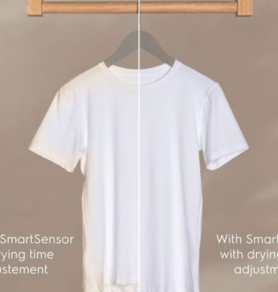 SmartSensors đo chính xác độ ẩm trong quần áo suốt chu trình sấy, từ đó điều chỉnh thời gian sấy để giảm thiểu sự sờn mòn của quần áo.