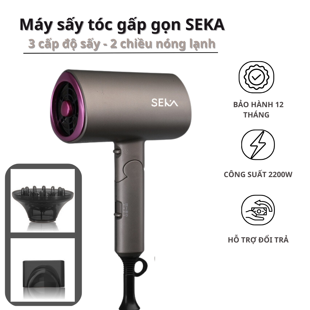 Máy Sấy Tóc, Máy Tạo Kiểu Tóc SEKA SK-2008 Gấp Gọn Công Suất Lớn 2200W Sấy 2 Chiều Nóng Và Lạnh – Bảo Hành 12 Tháng