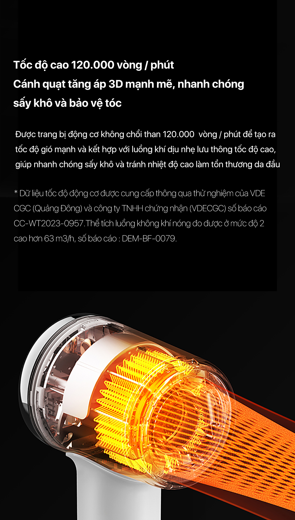 - Động cơ không chổi than hoạt động êm ái 120.000 vòng/phút