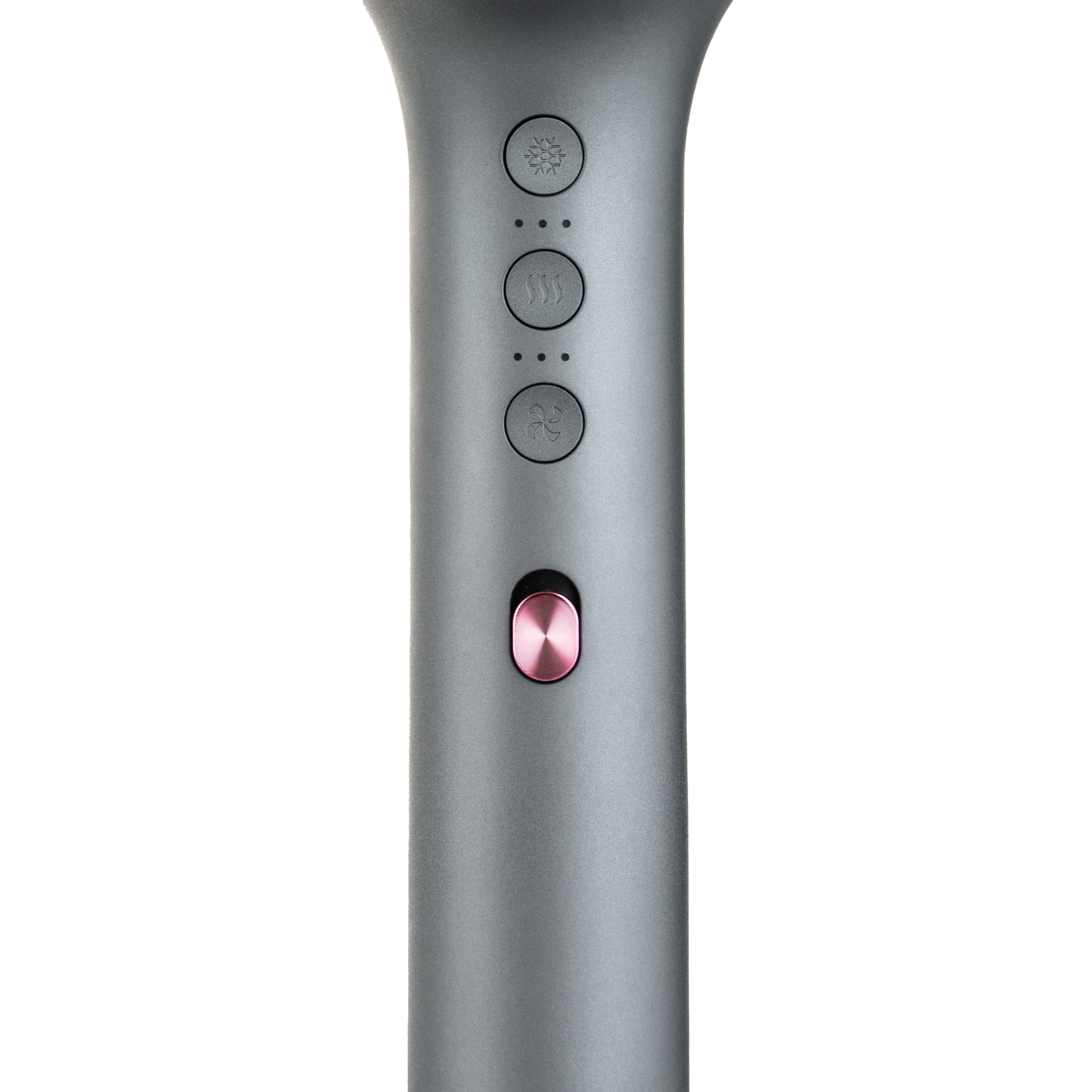 Công nghệ tinh hoàn ion âm của máy sấy tóc giúp giảm xoăn cứng và tăng cường độ bóng.