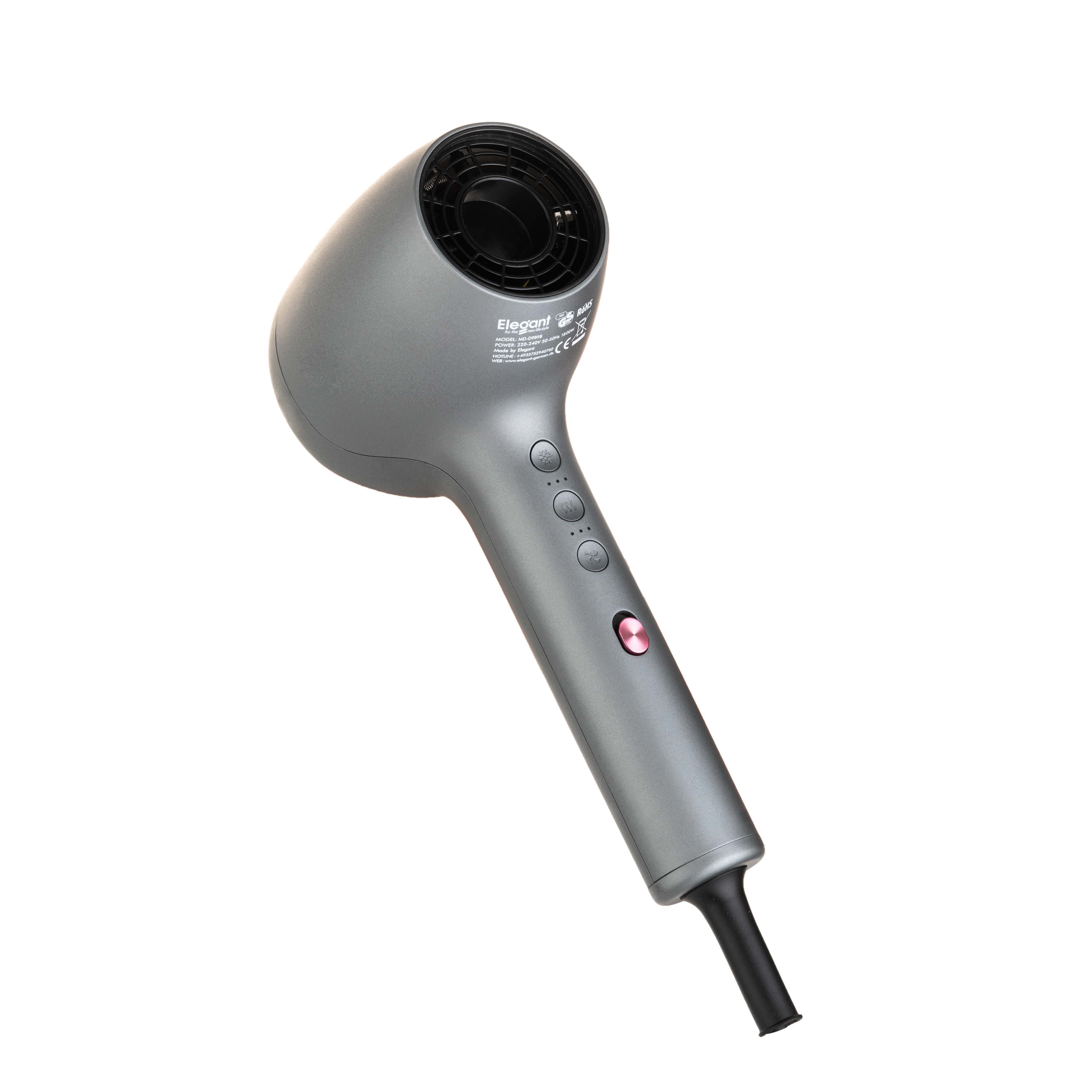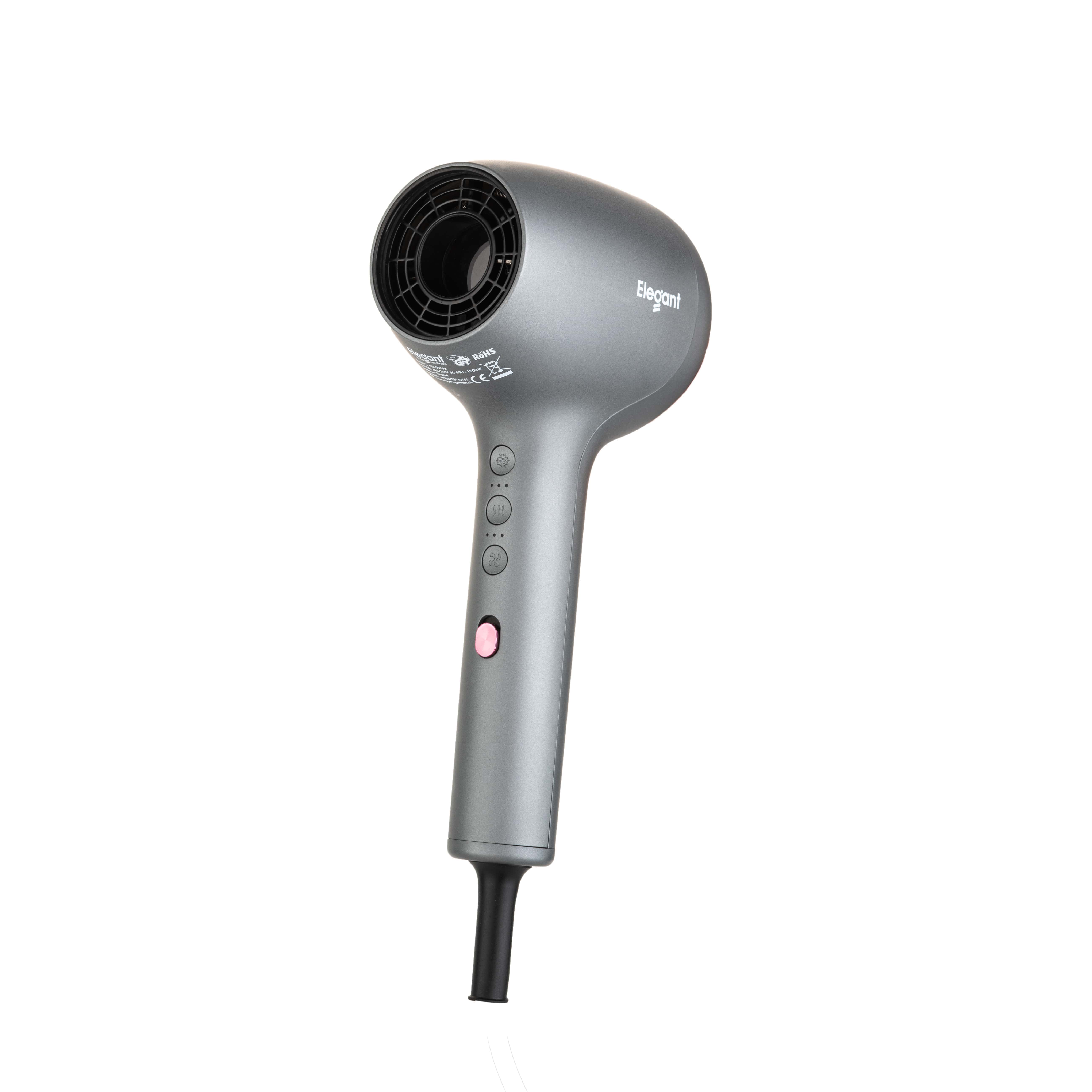 Máy sấy tóc Elegant công suất lớn 1800W có chức năng ion giữ ẩm cho tóc giảm khô sơ gẫy rụng. Sức gió mạnh mẽ sử dụng được cho nhân gia đình và nhà hàng, động cơ DC siêu bền sấy lên tới 1500 giờ, hoạt động êm ái. Đạt tiêu chuẩn chất lượng Châu Âu các chứng nhận CE, UL859, FCC, 3C. Nhựa được làm bằng nhựa ABS cao cấp chịu nhiệt, dây điện dài 2,5m. Thân thiện với môi trường.