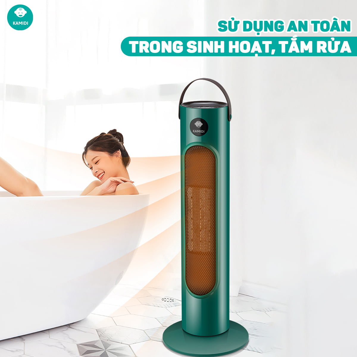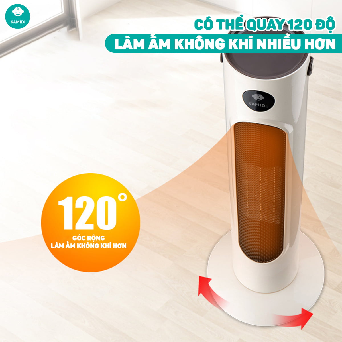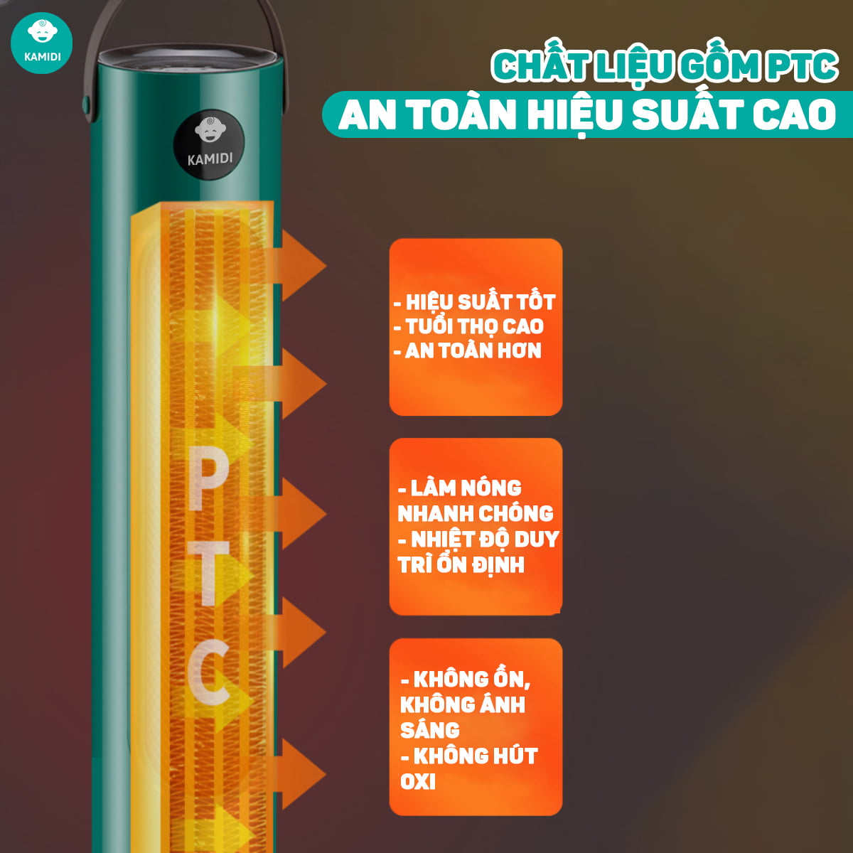 Máy sưởi gốm đa năng Kamidi với dáng đứng thông minh cao cấp sử dụng công nghệ PTC (Ceramic) làm nóng an toàn bằng các nung nóng các tấm gốm bên trong máy, không đốt cháy oxy, làm nóng nhanh chóng. Mặt trước của máy là lưới siêu bền không gỉ, không bị oxy hoá trong quá trình sử dụng.
