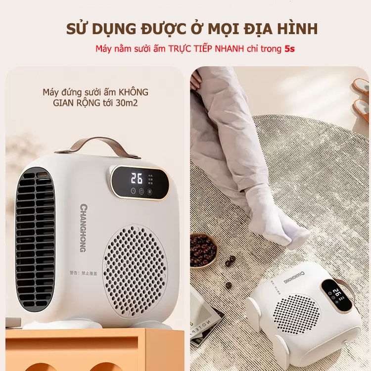 - Máy sưởi mini Xiaomi Changhong thích hợp sử dụng cả ĐỨNG và NẰM vô cùng tiện lợi, phạm vi sử dụng rộng tới 30m2.