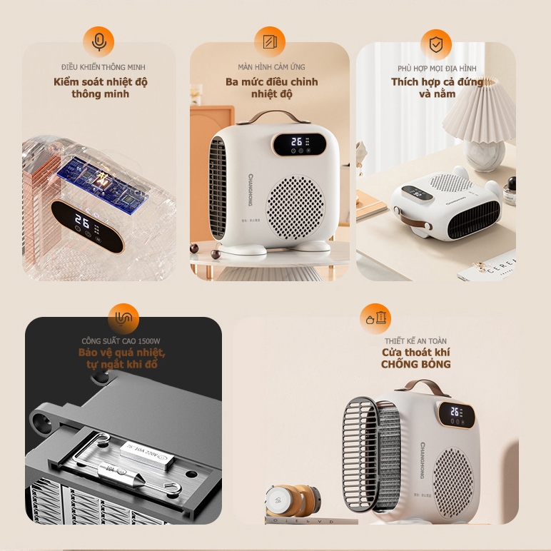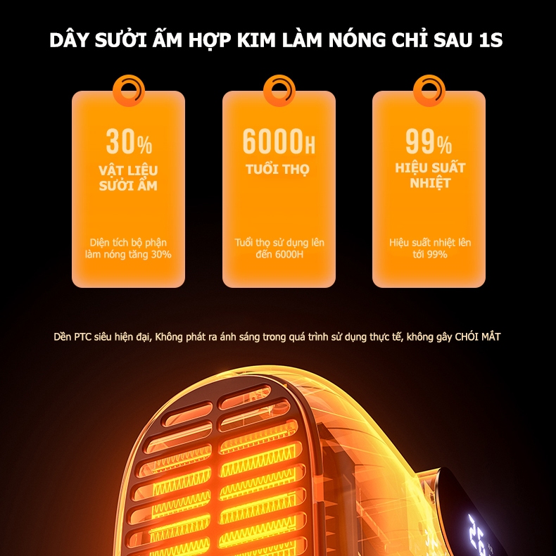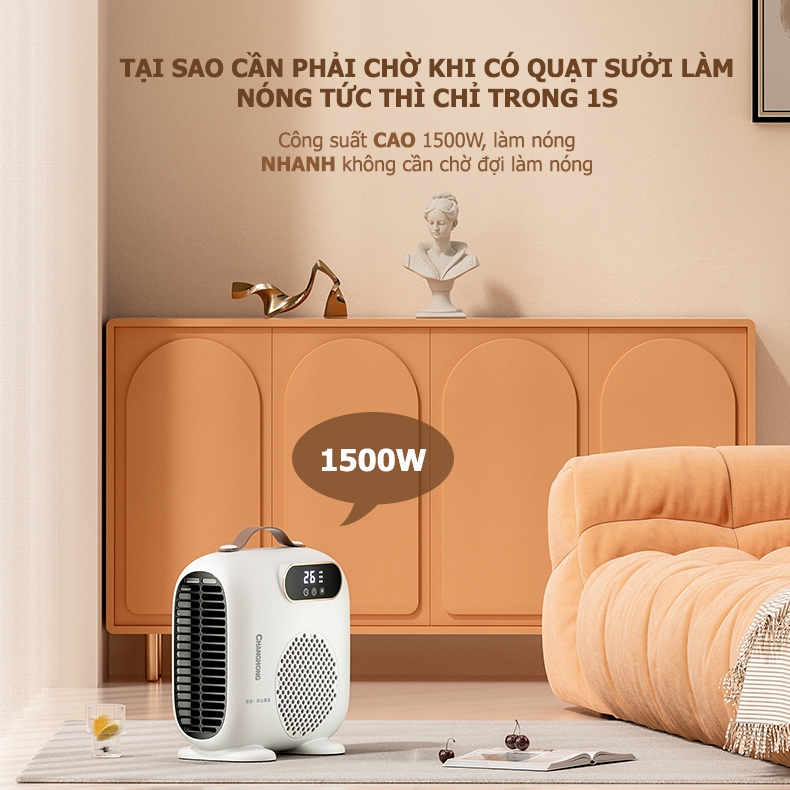 - Máy sưởi mini có công suất lớn 1500W LÀM NÓNG CỰC NHANH, TIẾT KIỆM ĐIỆN, độ bền vượt trội, làm nóng tức thì chỉ trong 1S