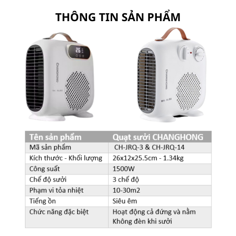 Máy sưởi mini Xiao Changhong, Quạt sưởi mini để bàn 2 chiều công suất lớn 1500W LÀM NÓNG TỨC THÌ kết hợp chế độ SẤY KHÔ, bảo vệ CHỐNG LẬT an toàn - Bảo hành 12 Tháng