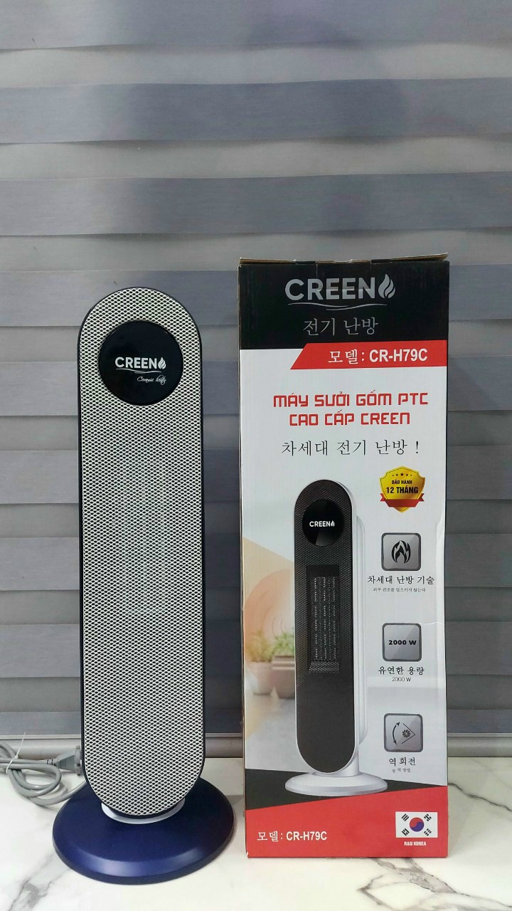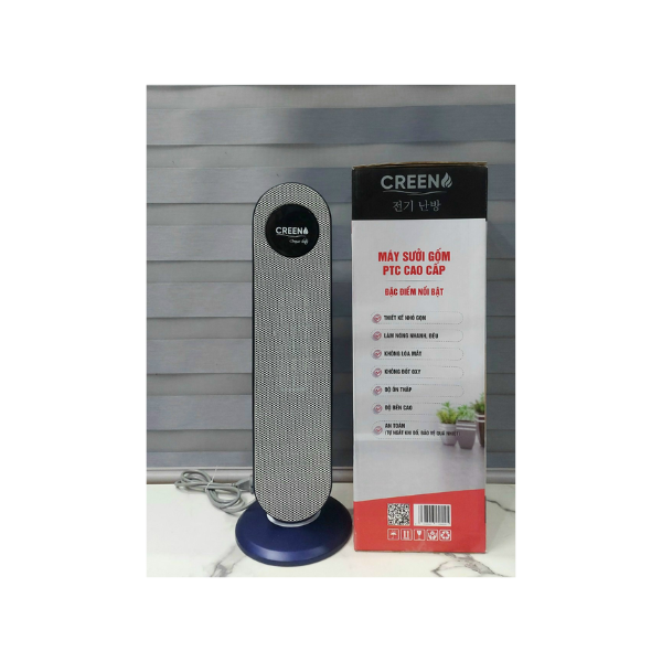 Máy sưởi gốm Creen (Ceramic) hoạt động dựa trên nguyên lý sử dụng điện năng đốt nóng thanh gốm và dùng nguyên lý đối lưu để tỏa nhiệt. Máy sưởi gốm Creen dùng gốm làm vật phát nhiệt, bộ phận này trong máy sưởi gốm là một miếng gốm hình đĩa gọi là đĩa gốm. Đĩa này được nối với một vật bằng kim loại, khi đĩa gốm được làm nóng lên sẽ truyền nhiệt cho dây kim loại và dòng nhiệt lượng đó sẽ được truyền đi theo hình thức đối lưu và mang hơi ấm tỏa ra từ từ ra bên ngoài giúp tăng nhiệt độ phòng mà không gây sốc nhiệt.