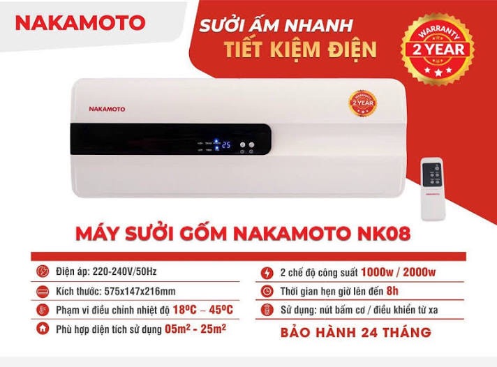 + Đặc biệt, sản phẩm máy sưởi gốm NAKAMOTO NK08 có chế độ bảo hành lên tới 2 năm (gấp đôi so với chế độ bảo hành của một số dòng máy sưởi gốm có trên thị trường).