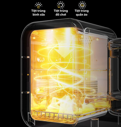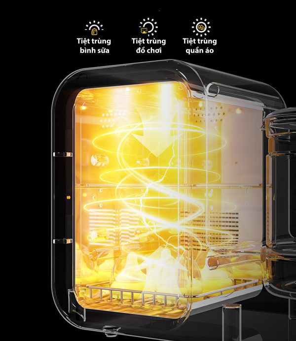 Lưu ý: Tuyệt đối không đưa thực phẩm, đồ dùng chứa pin và các đồ dùng chịu nhiệt dưới 60 độ vào trong thiết bị để sấy khô và tiệt trùng.