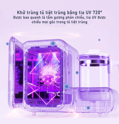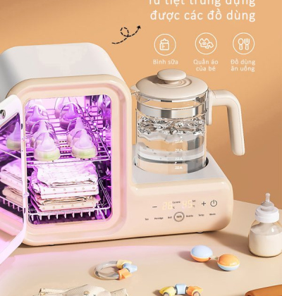 Tích hợp đa dạng giữa : Tiệt trùng UV và sấy khô bảo quản – đun nước khử clo giữ nhiệt pha sữa – pha trà, nấu cháo sấy khô hoa quả.