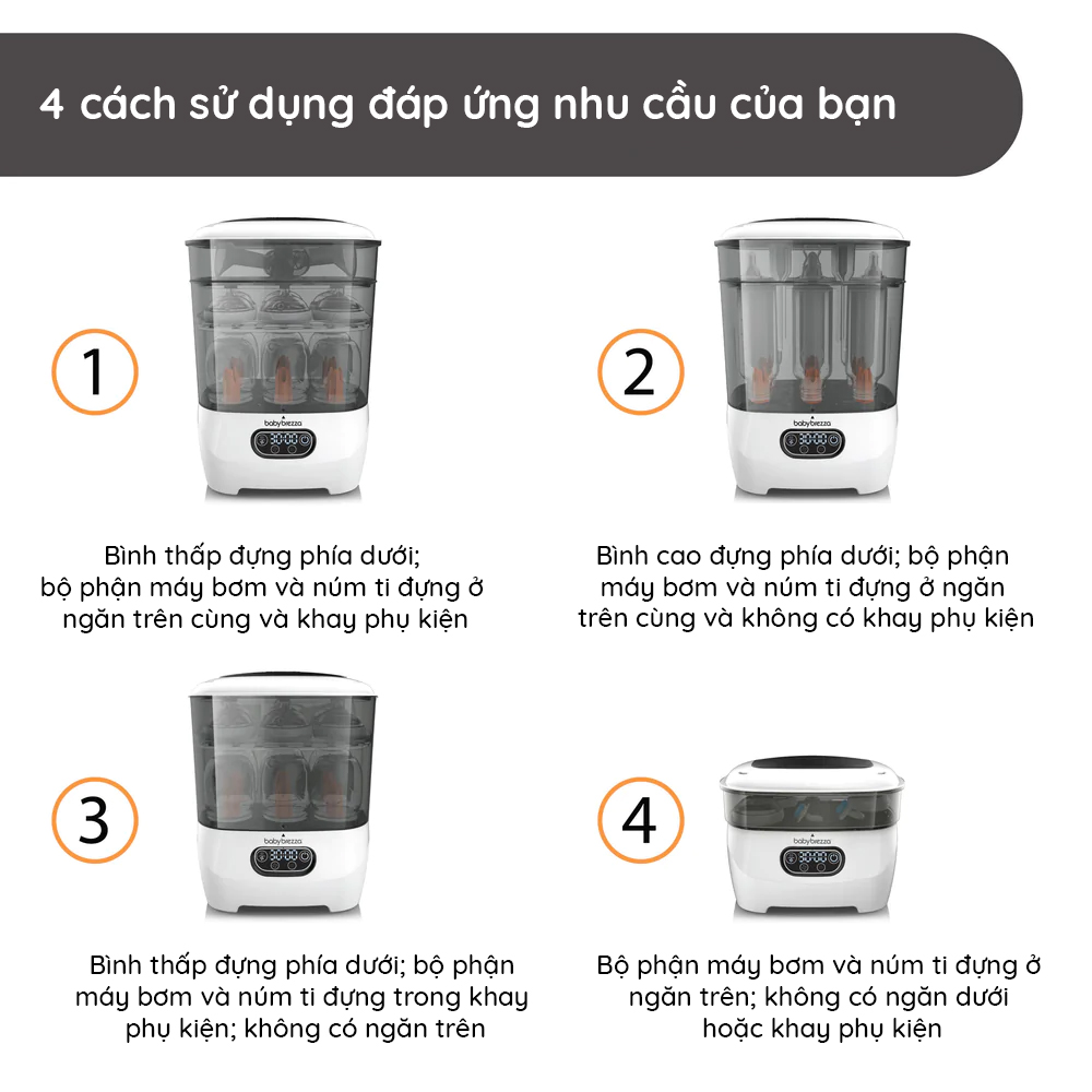 Sử dụng máy tiệt trùng sấy khô Baby Brezza BRZ10030 không chỉ giúp mẹ bỉm tiết kiệm thời gian và công sức mà còn mang lại sự yên tâm tuyệt đối về vệ sinh cho bé yêu. Máy tiệt trùng bằng hơi nước tự nhiên, không sử dụng hóa chất, giúp bảo vệ sức khỏe của bé một cách tối ưu.