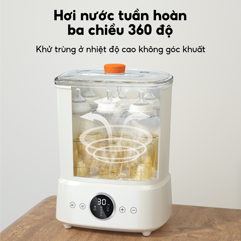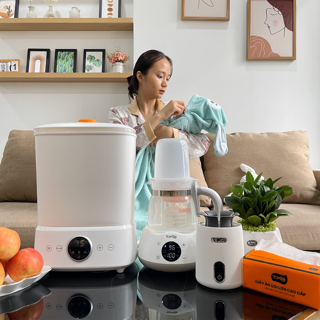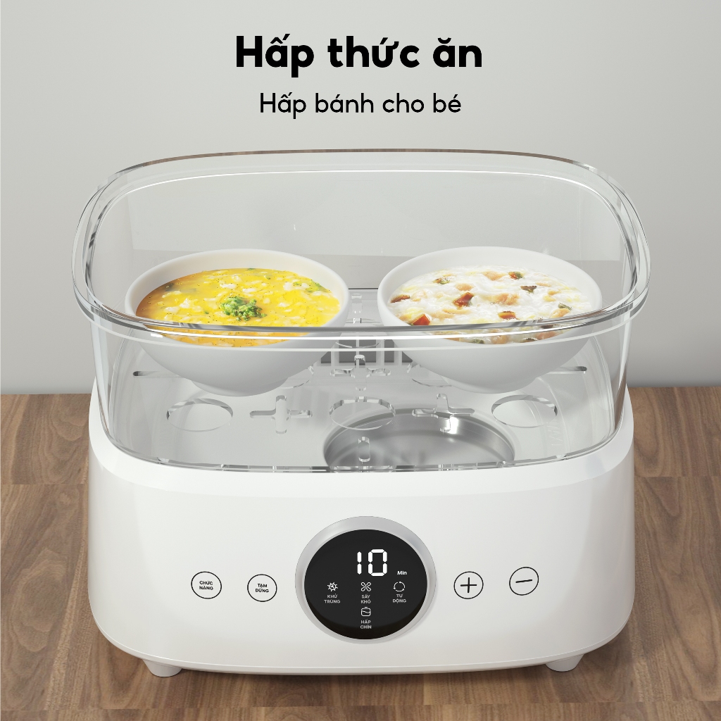 - Khử trùng tối đa trong 10 phút, sấy khô 30-40p, tiết kiệm thời gian cho mẹ.