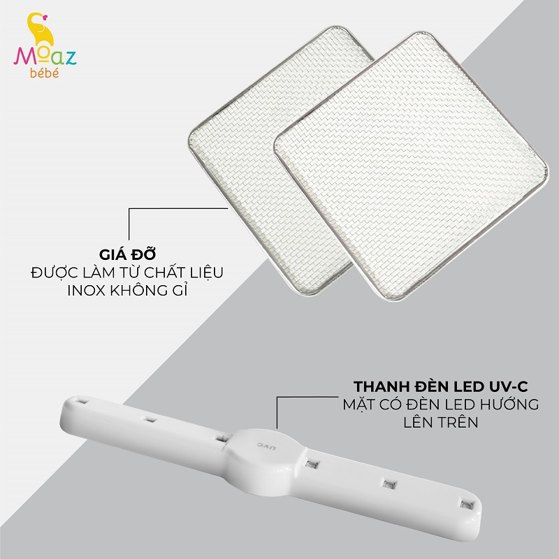 Cấu tạo thể hiện bề ngoài máy tiệt trùng, sấy khô tia UVC và bảo quản bình sữa Moaz 025