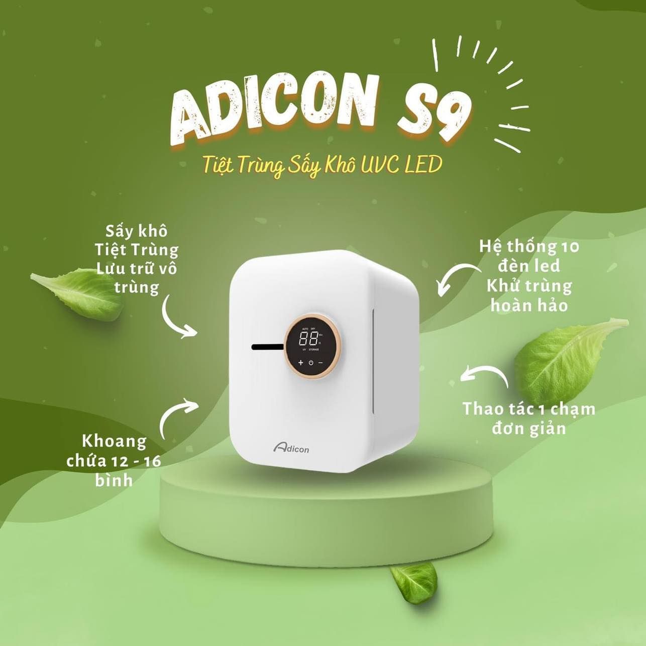 Máy tiệt trùng sấy khô UVC - LED Adicon S9 là một sản phẩm đáng đầu tư cho mọi gia đình. Với công nghệ hiện đại, tính năng tiện lợi và thiết kế thông minh, Adicon S9 không chỉ giúp bảo vệ sức khỏe gia đình bạn mà còn tiết kiệm thời gian và công sức. Đừng bỏ lỡ cơ hội sở hữu sản phẩm tuyệt vời này!