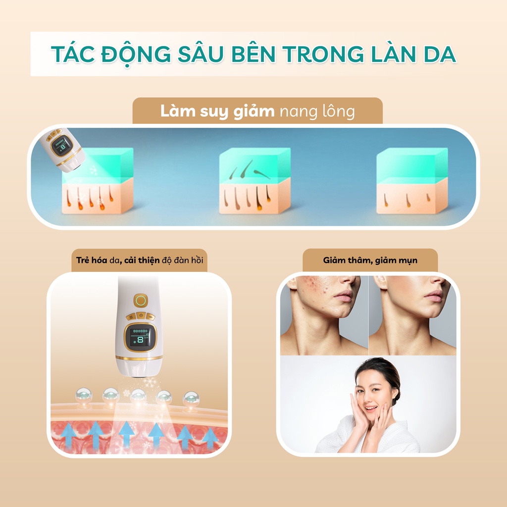 GIẢM THIỂU CÁC SẮC TỐ DA BẤT THƯỜNG – so với các phương pháp điều trị bằng laser khác, công nghệ IPL ít bị đóng vảy hơn, vì vậy người sử dụng máy có thể trang điểm và rửa mặt vào ngày điều trị