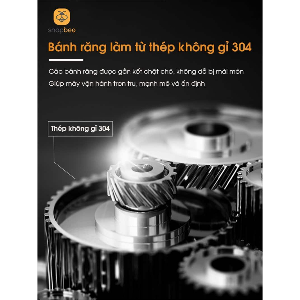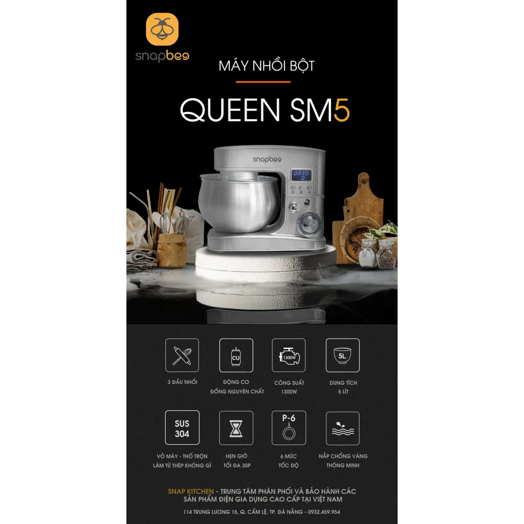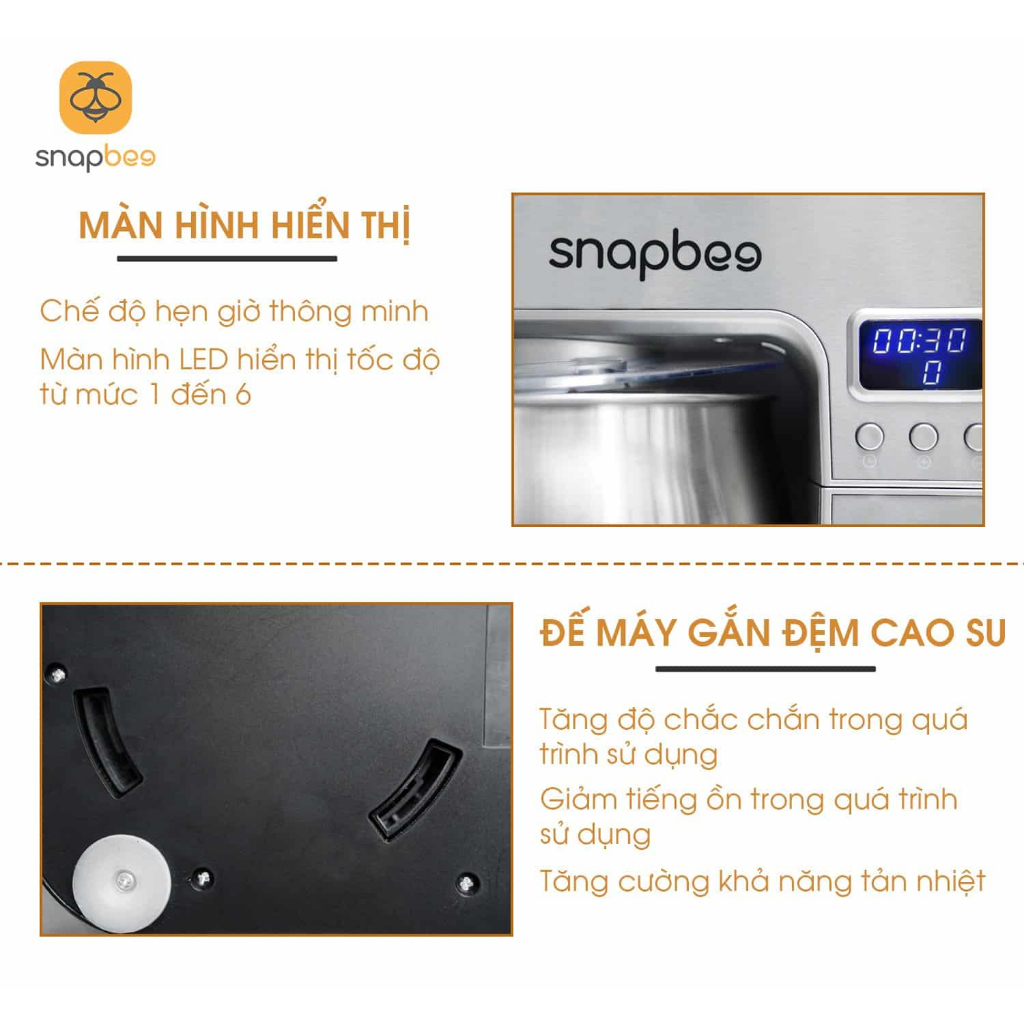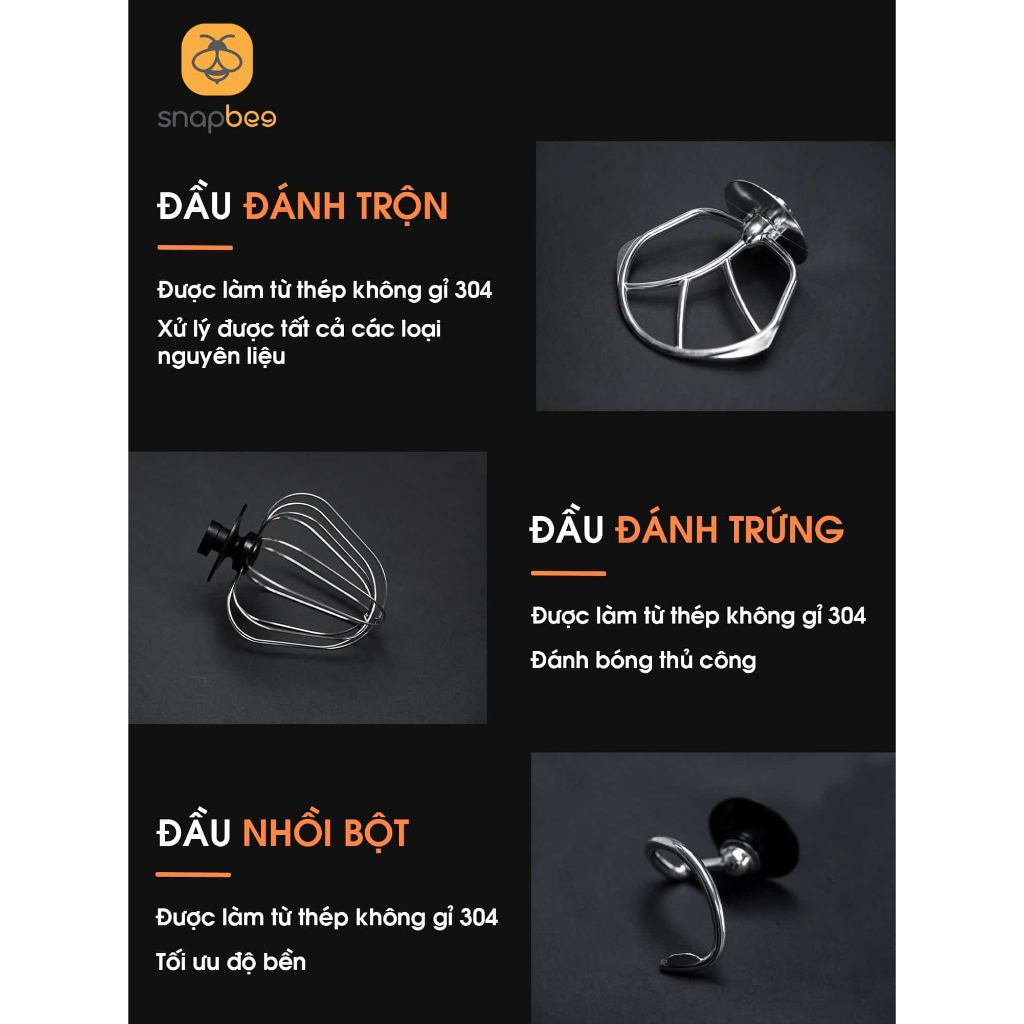 - Thố trộn bằng inox 304 cao cấp cùng dung tích lớn 5L, (nhồi tối đa 700g bột) sáng sạch sang trọng phù hợp trong mọi không gian bếp