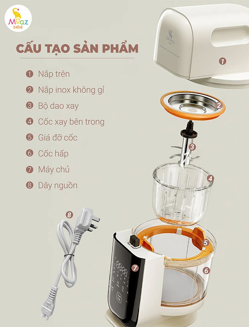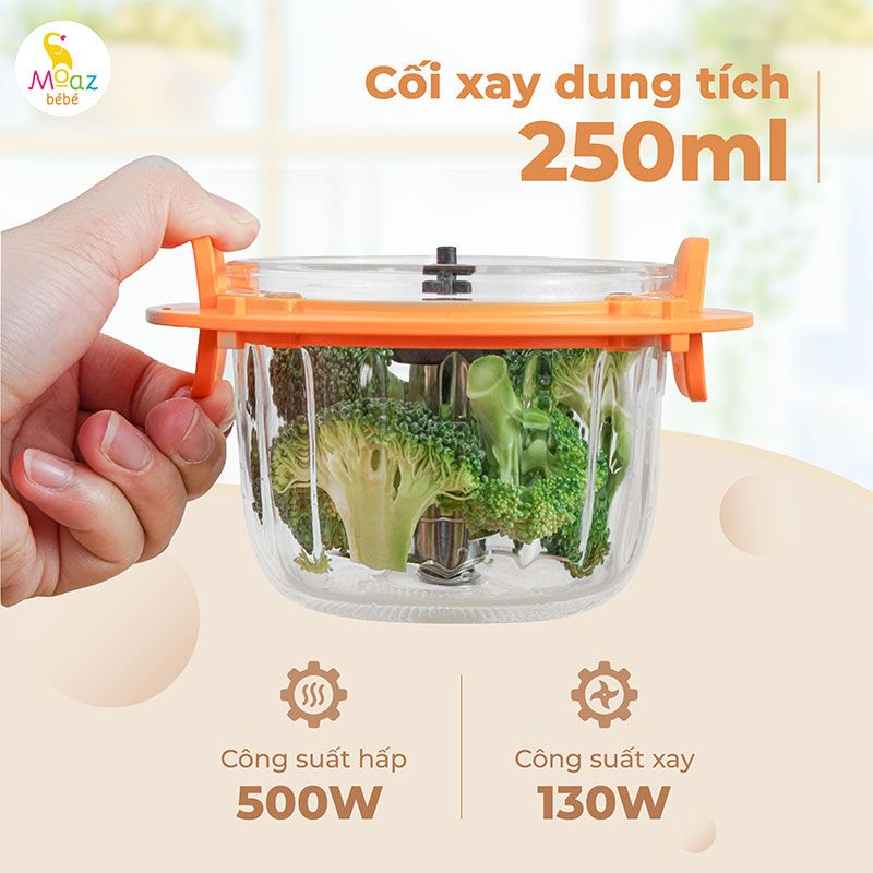 Sản phẩm máy xay hấp đa năng Moaz BéBé MB093 có công dụng hấp, xay, hầm và luộc thức ăn cho bé và cho cả gia đình. Sản phẩm giúp bé được thưởng thức những món ăn chuẩn vị, đầy đủ dinh dưỡng cần thiết. Thiết kế thông minh giúp mẹ dễ dàng thực hiện quá trình chuẩn bị nguyên liệu lẫn nấu ăn nhanh chóng cho bé.