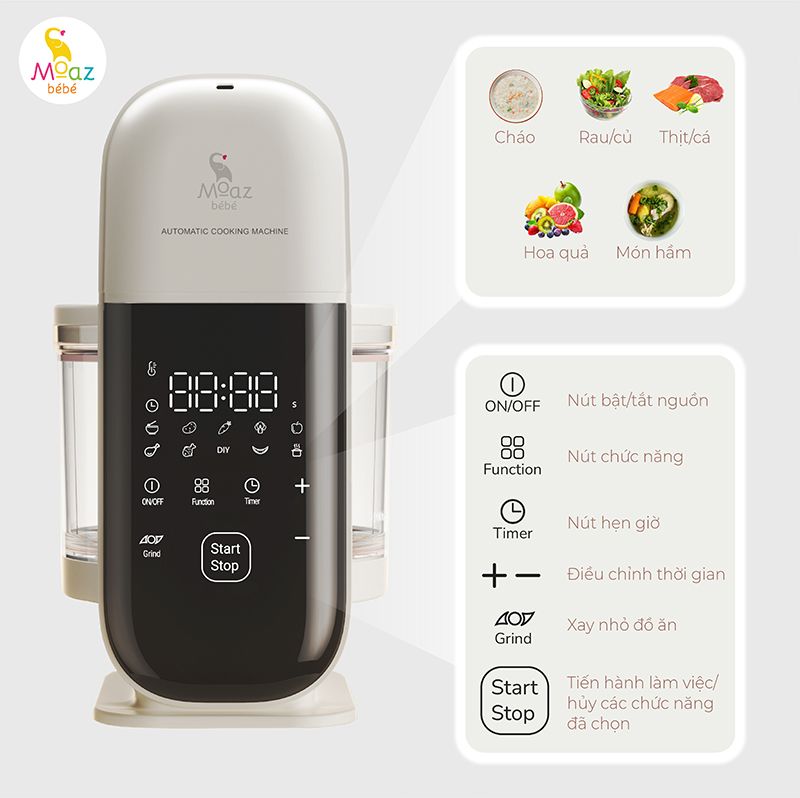 Sản phẩm máy hấp xay thông minh Moaz BéBé MB – 093 có những ưu điểm nổi bật như sau: