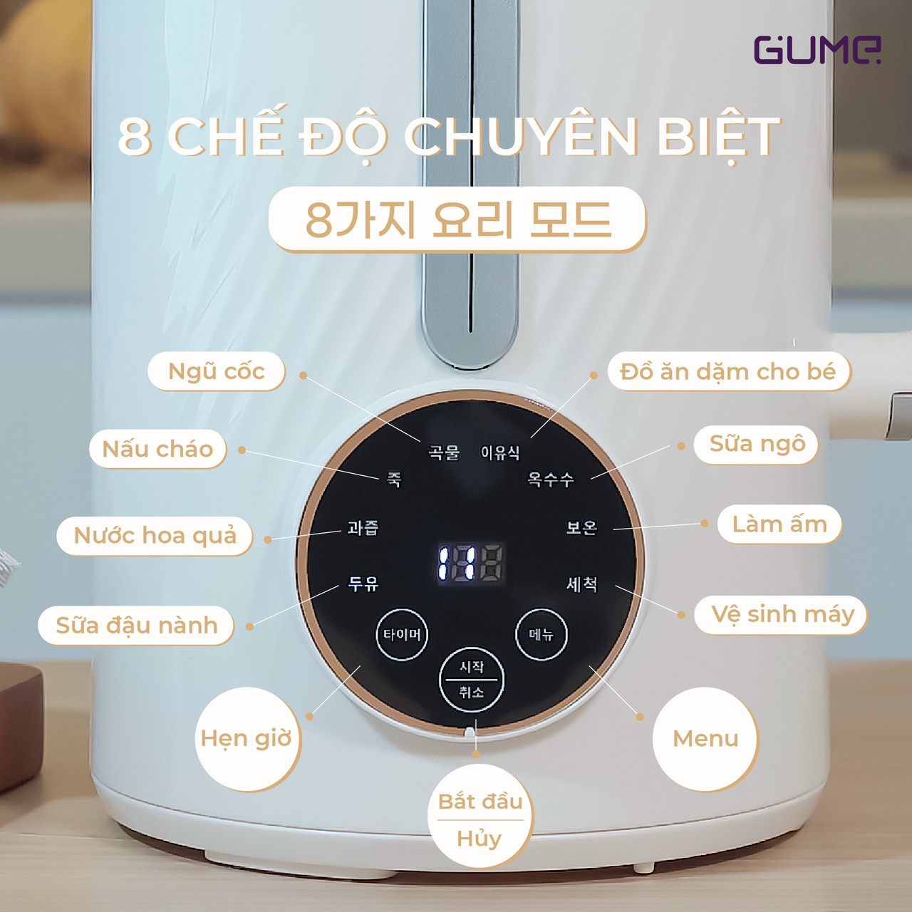 Máy làm sữa hạt Gume phiên bản mini được thiết kế với công nghệ tiên tiến, cho phép bạn dễ dàng chế biến các loại sữa hạt tự nhiên từ hạt như hạt đậu nành, hạt hướng dương, hạt lựu, hạt mè và nhiều hạt khác. Quá trình làm sữa hạt trở nên nhanh chóng và đơn giản chỉ trong vài bước đơn giản.