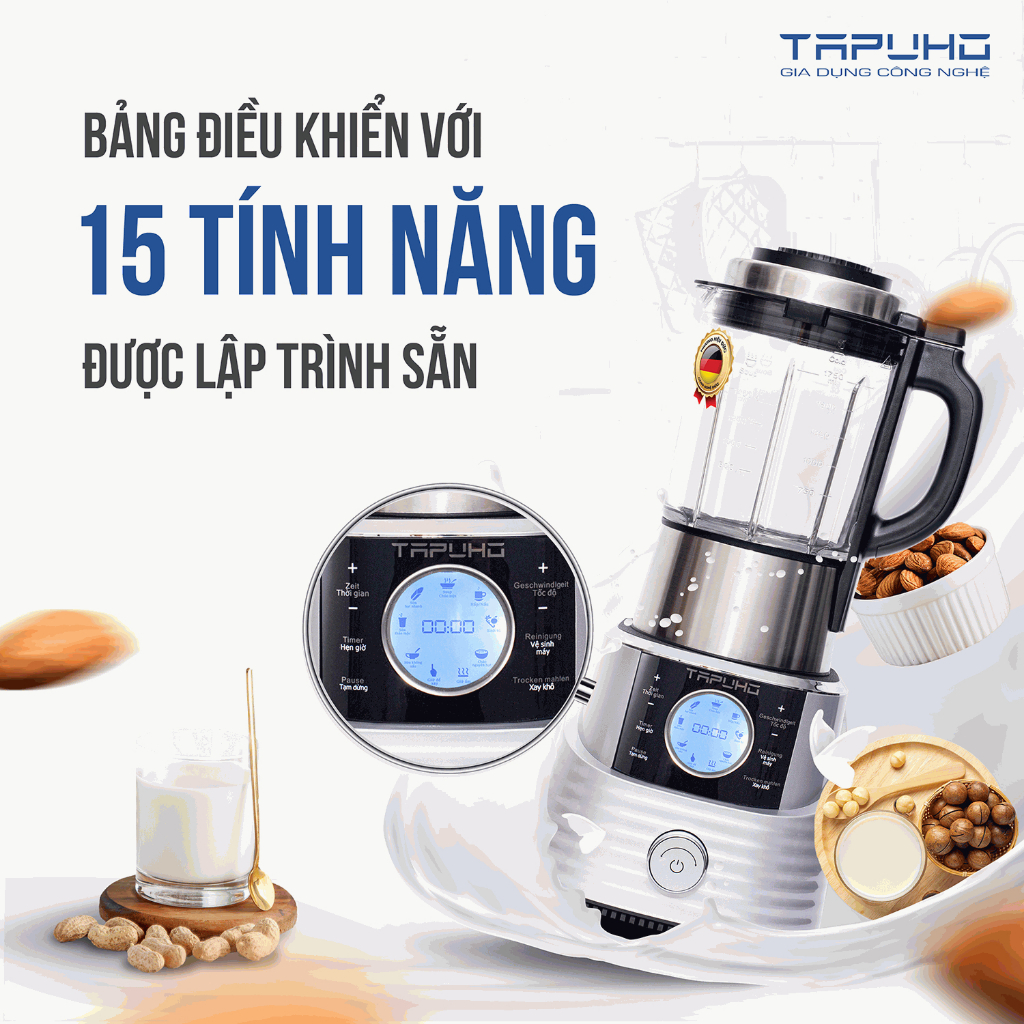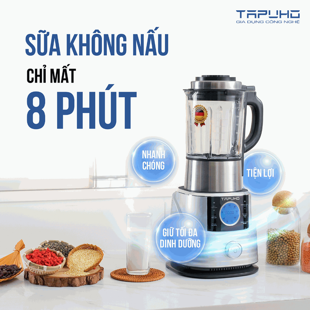 Máy làm sữa hạt đa năng Tapuho T01 siêu mịn, hoạt động bền bỉ với công suất vượt trội, độ ồn thấp nhất trên thị trường, thiết kế sang trọng với màn hình tinh thể lỏng hiện đại kết hợp bảng điều khiển cảm ứng và nút vặn trang nhã, nhiều tính năng công nghệ tiên tiến sẽ mang lại cho gia đình bạn những ly sữa hạt thơm ngon hấp dẫn và nhiều dinh dưỡng, đặc biệt giải phóng sức lao động trong mỗi gia đình.