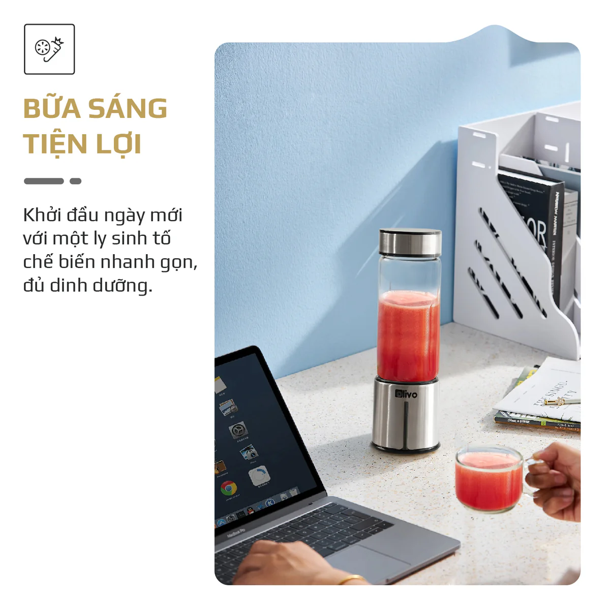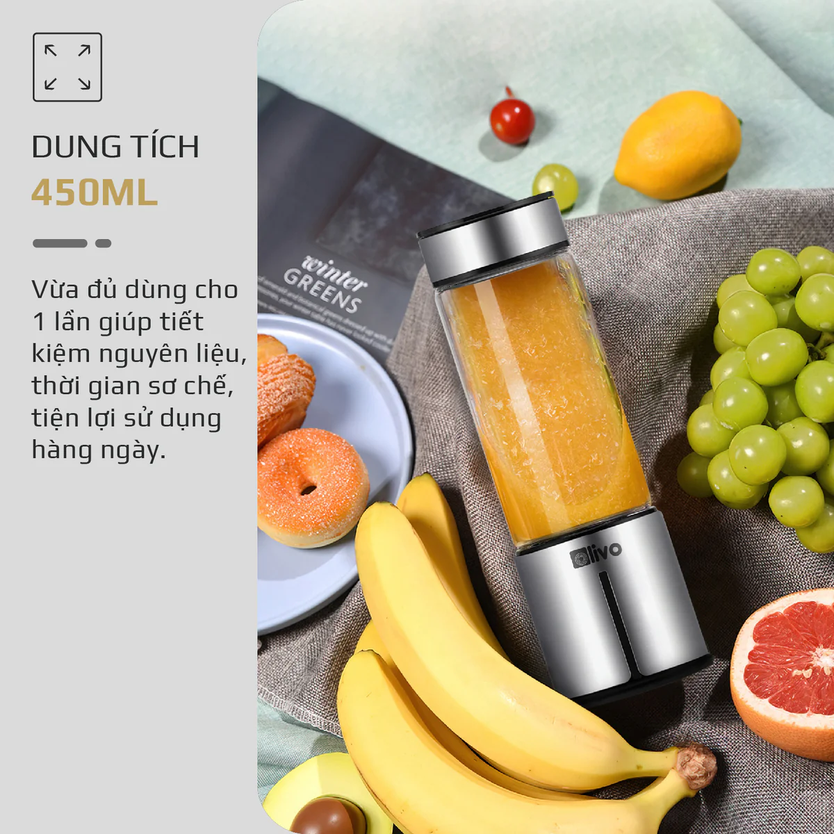 Máy Xay Sinh Tố Cầm Tay OLIVO PB01, Dung Tích 450ML, Xay Được Đá Viên, Thiết Kế Nhỏ Gọn, Hàng Chính Hãng