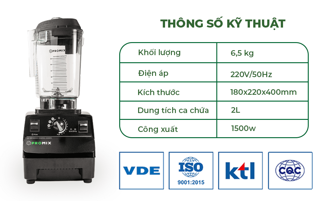 Máy xay đa năng (công nghiệp) Promix PM-919B sở hữu công suất mạnh mẽ lên đến 1500W, tốc độ 26000 vòng/ phút đủ khả năng giúp các chủ quán thực hiện các món có độ khó cao như đá xay, chanh tuyết, sinh tố,…