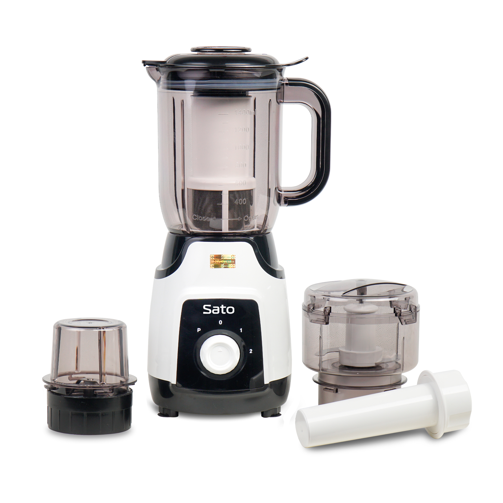 Máy xay sinh tố đa năng Sato ???????????????????????????? với 3 "tuyệt chiêu" gồm 2 tốc độ xay và 1 chế độ nhồi, giúp xay sinh tố - rau củ, thực phẩm, hạt khô... nhanh chóng mà vẫn hoạt động êm ái, nhẹ nhàng;