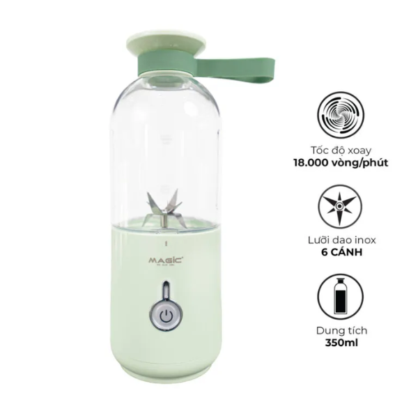 Máy xay sinh tố Magic A-201 70W 1500mAh là sản phẩm tiện ích giúp chuẩn bị đồ uống và thực phẩm nhanh chóng. Với thiết kế nhỏ gọn và pin tích hợp, máy có thể sử dụng bất cứ đâu, từ nhà bếp đến văn phòng hoặc du lịch. Dung tích cối 350ml đủ để xay một lượng vừa đủ cho 1–2 người, tiện lợi và tiết kiệm thời gian.