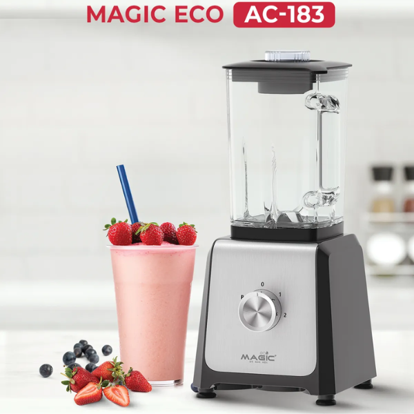 Máy xay sinh tố Magic Eco AC-183 là thiết bị đa năng hiện đại, lý tưởng cho việc chế biến sinh tố, smoothie, sữa hạt và thực phẩm dinh dưỡng khác. Với công suất 1200W mạnh mẽ, máy giúp xay nhuyễn đá, trái cây, hạt cứng và thực phẩm mềm một cách nhanh chóng, tiết kiệm thời gian nấu nướng.