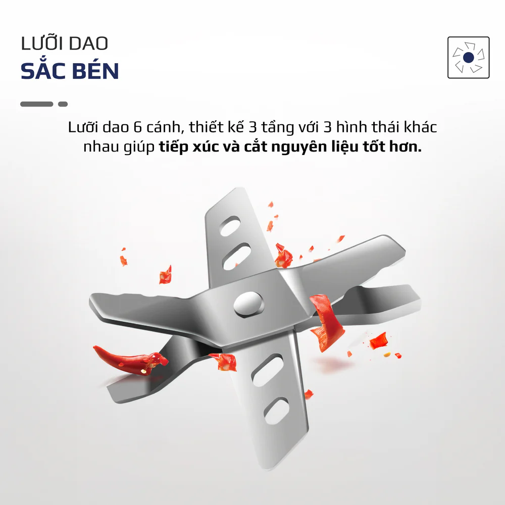 Lưỡi dao: Inox 304 siêu bền, 6 cánh