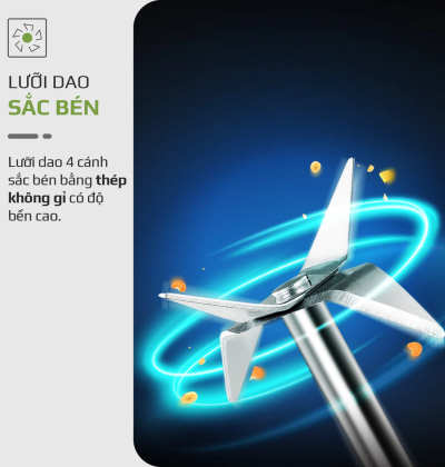Lưỡi dao: 6 cánh inox 304 không gỉ