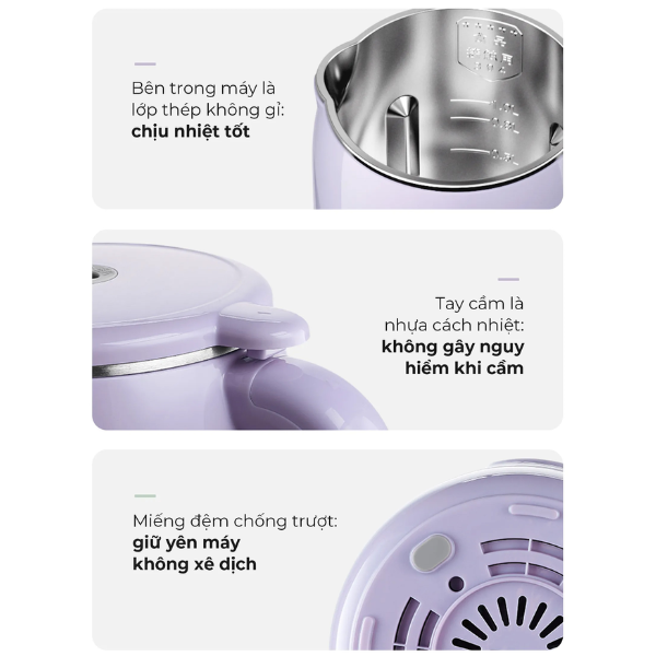 Đặc biệt, Magic A-100 có pin dự phòng 1200mAh, cho phép máy duy trì hoạt động trong trường hợp mất điện tạm thời. Đây là tính năng hiếm thấy trên các dòng máy xay sữa hạt, mang lại sự tiện lợi tối đa cho gia đình. Máy hoạt động ổn định, ít ồn nhờ hệ thống giảm rung cải tiến.