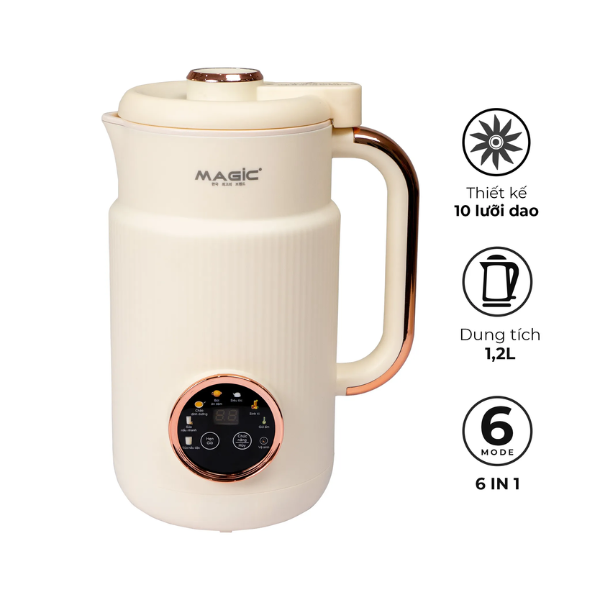 Máy xay sữa hạt Magic A-97 phiên bản lòng nồi men gốm là dòng máy đa năng cao cấp, được thiết kế để phục vụ nhu cầu chế biến thực phẩm dinh dưỡng, tiện lợi và an toàn. Với công suất 800W, máy giúp xay nhuyễn hạt cứng như đậu nành, hạnh nhân hay óc chó, đồng thời nấu chín thực phẩm nhanh chóng, tiết kiệm thời gian chuẩn bị bữa ăn hàng ngày.