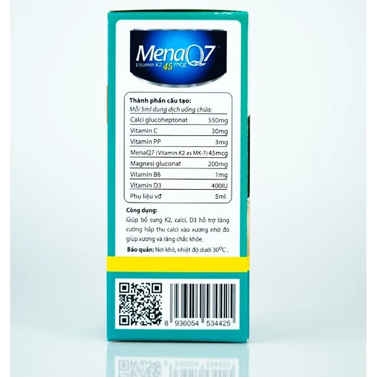 Công dụng MENA Q7 VITAMIN K2 45MCG: Giúp bổ sung K2, Calci, D3 hỗ trợ tăng cường hấp thu Calci vào xương, nhờ đó giúp xương và răng chắc khỏe.