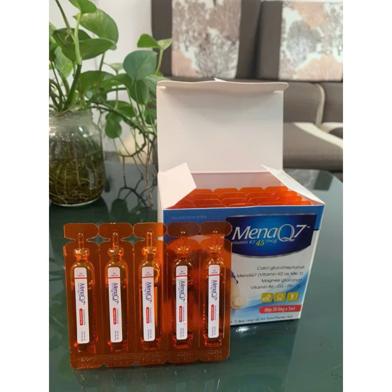 Cacli glucoheptonat 550mg, Vitamin C 30mg, Vitamin PP 3mg, MenaQ7 (Vitamin K2 as MK-7) 45mcg, Magnesi gluconat 200mg, Vitamin B6 1mg, Vitamin D3 400IU, Phụ liệu vđ 5ml.