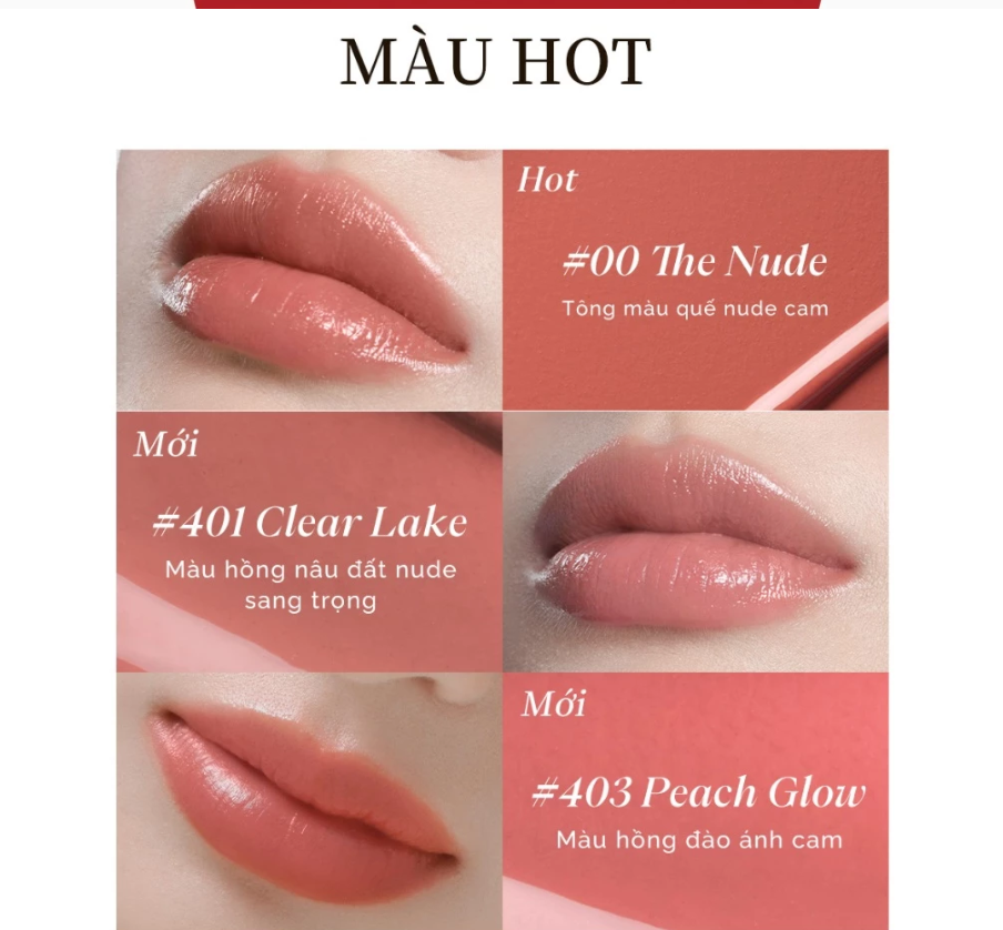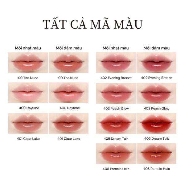 Màu sắc trong trẻo: Lớp son bóng tạo cảm giác màu sắc nhẹ nhàng, trong veo, rất tự nhiên.