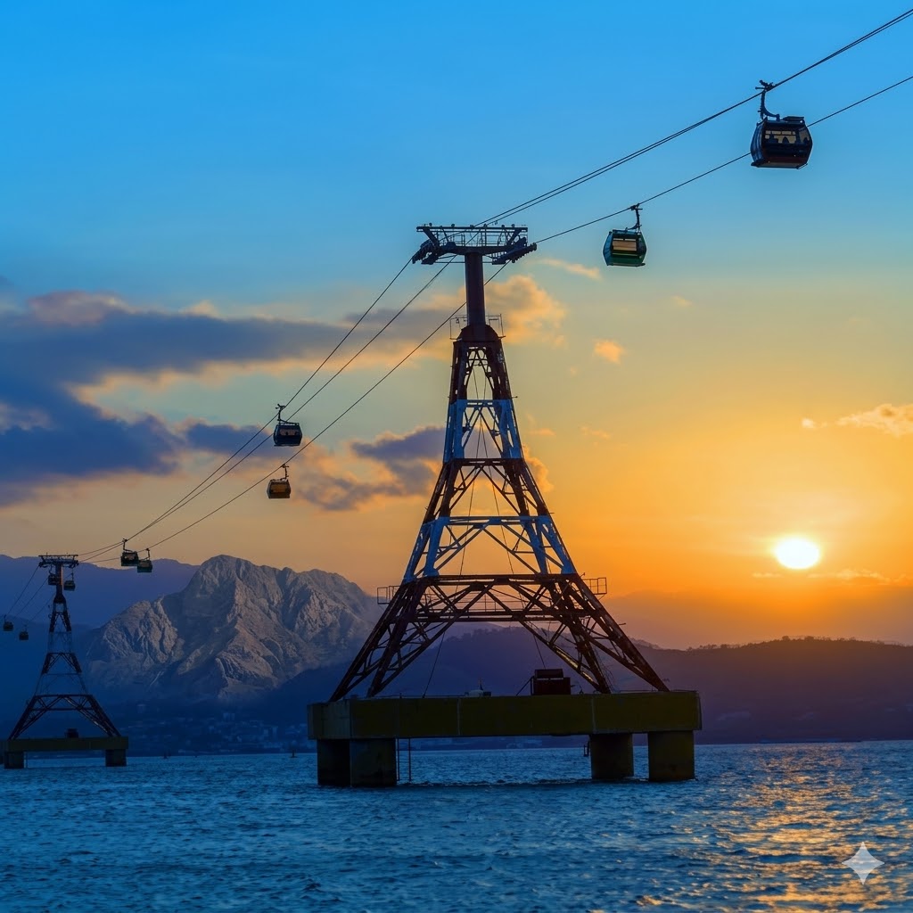 Di chuyển bằng cáp treo vượt biển đến VinWonders.