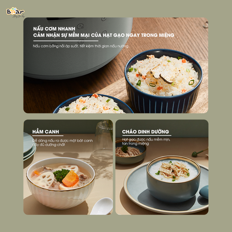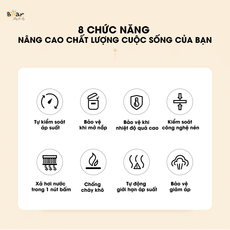 Vậy với những tính năng trên, nồi áp suất Bear 2.5L sẽ mang lại lợi ích gì cho người dùng? Hãy cùng Bear Việt Nam khám phá ngay dưới đây nhé!
