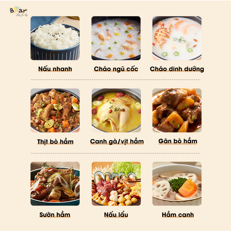 – Tính năng nấu: Nồi áp suất Bear 2.5L được thiết kế với nhiều tính năng nấu thông minh, mang đến trải nghiệm nấu nướng tuyệt vời và đáp ứng nhu cầu và sở thích của bạn và gia đình.