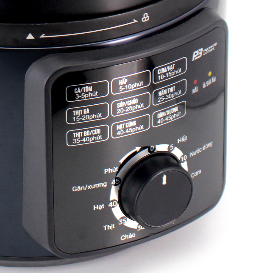 Chức năng đa dạng: Nồi áp suất điện Kalpen P3 có nhiều chế độ nấu tự động như hầm xương, nấu cháo, nấu cơm, hấp, làm bánh, v.v. với các nút bấm điện tử dễ dàng thao tác.