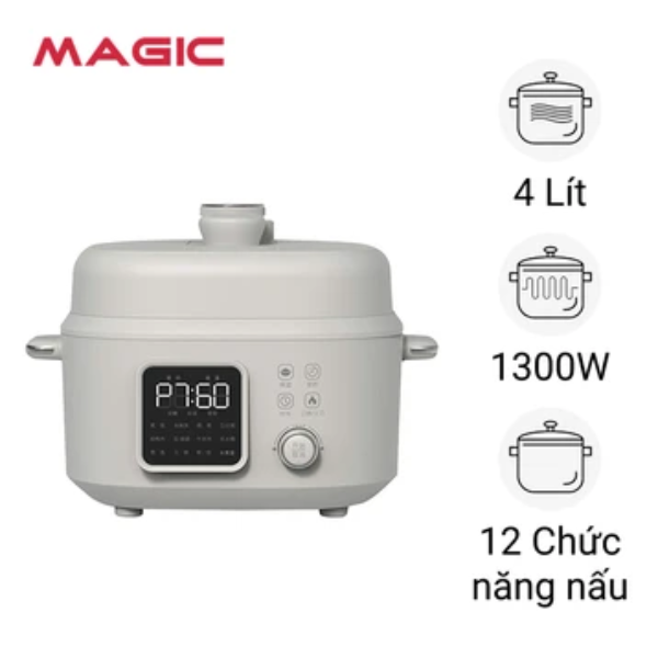 Nồi áp suất đa năng Magic AC-241 4L là giải pháp nấu ăn nhanh chóng, tiện lợi cho gia đình hiện đại. Với dung tích 4L, nồi phù hợp cho gia đình từ 4-6 người, giúp chế biến nhiều món ăn trong thời gian ngắn mà vẫn giữ được hương vị và dưỡng chất.