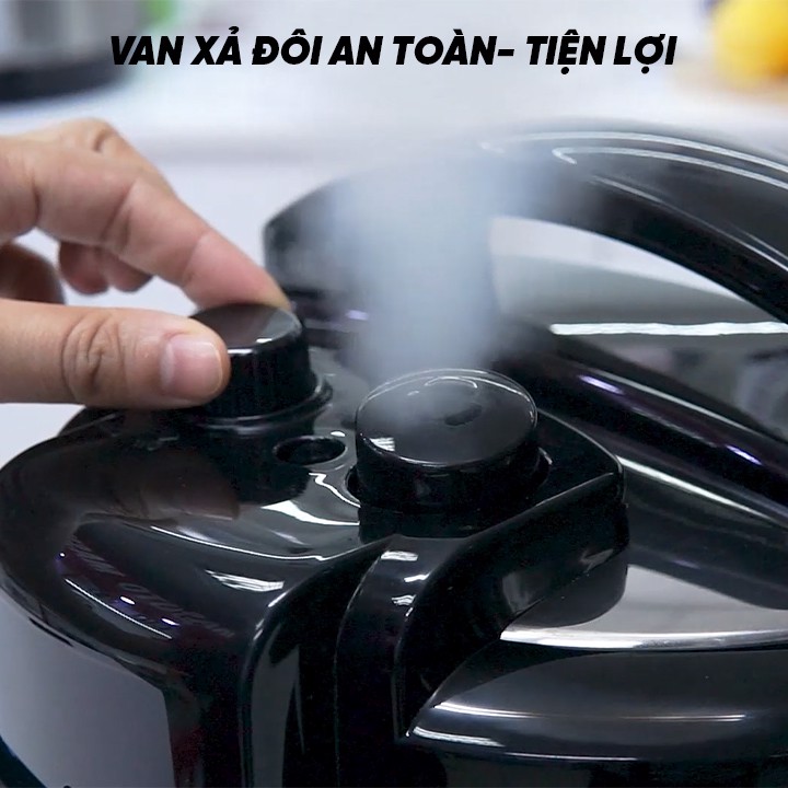 Để xả áp suất, bạn chỉ cần xoay nhẹ nút xả áp trên tay cầm của nắp nồi, như vậy có thể mở nắp và tiếp thêm nguyên liệu hoặc nêm nếm gia vị, vô cùng tiện lợi.