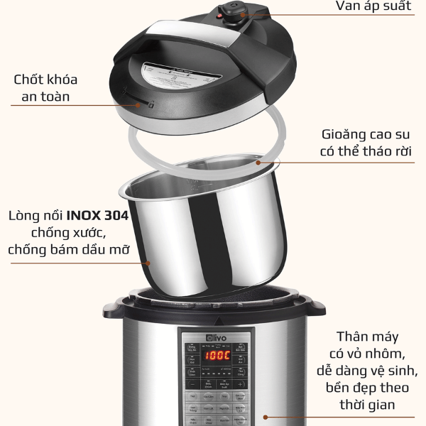 – Nồi áp suất điện OLIVOPC60 có những thiết kế và tính năng an toàn vượt trội so với dòng nồi áp suất cơ thông thường phổ biến hiện nay.