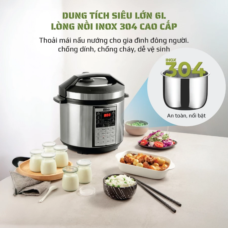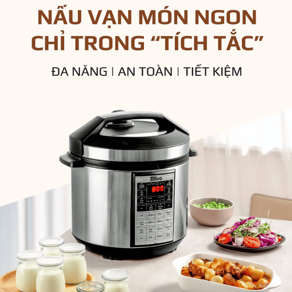 – Nồi hầm OLIVO PC60 có thể thay thế 8 loại thiết bị nhà bếp như : Nồi áp suất cơ, nồi cơm điện , nồi nấu lẩu, chảo rán, bếp nướng, nồi hấp, máy làm sữa chua, nồi nấu ăn thông thường,